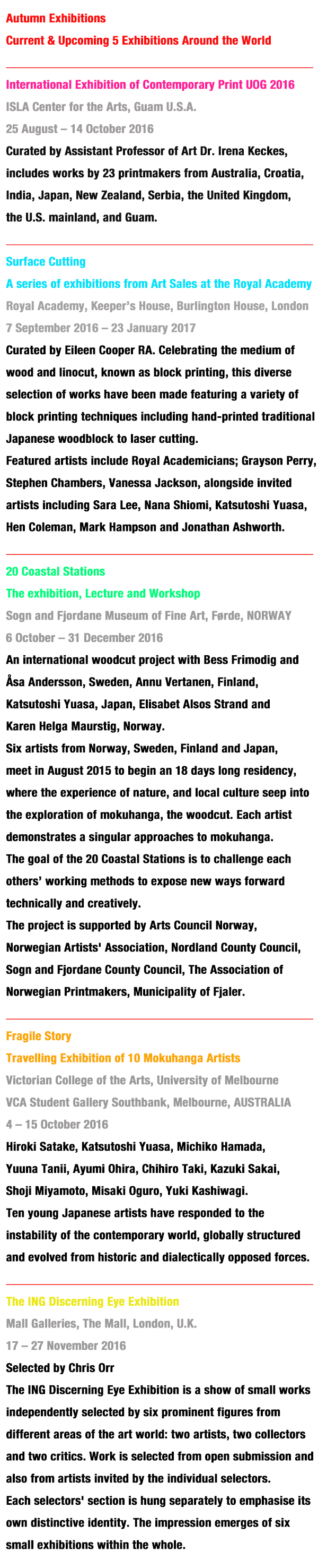 | Forthcoming exhibitions and art fairs (the first half of 2015) |