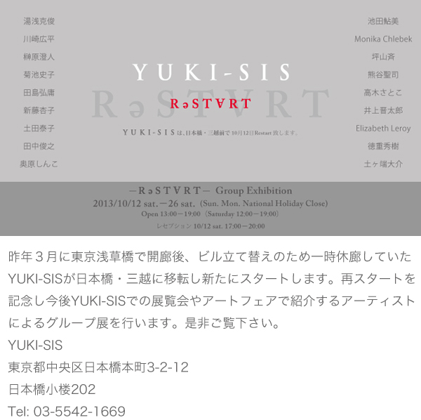 | Solo Exhibition at YUKI-SIS/ 4-25 Apr |