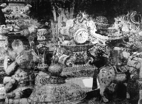 it doesn't seem to move forwards, but something happens nevertheless / 122cmx165cm / woodcut on paper