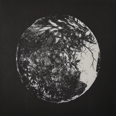 The only people who leave the labyrinth can be happy. But the only people who are happy can get out from the labyrinth. / 45cmx45cm / Oil-based woodcut on paper