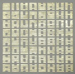 000+111=101+010=011+100=110+001=111 / 11cm x 11cm / Oil-based woodcut with gold leaf on paper