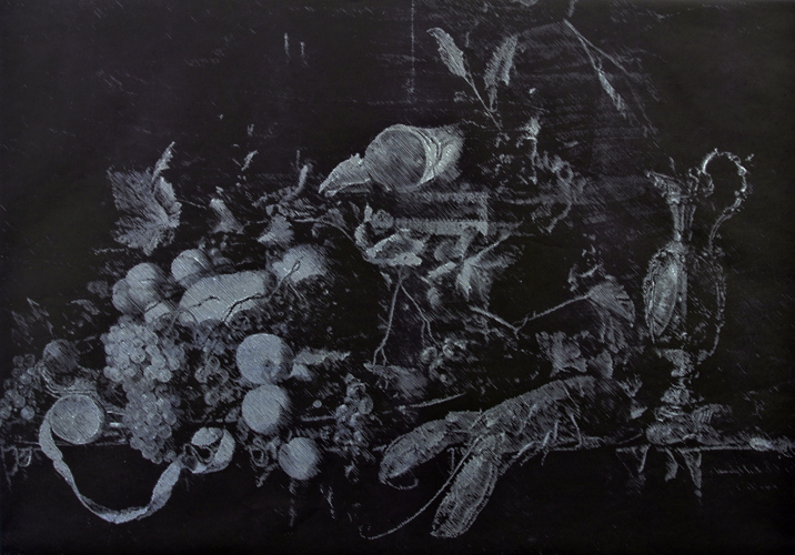 Death of Life / 100cm x 143cm / Oil-based woodcut on hand-painted paper