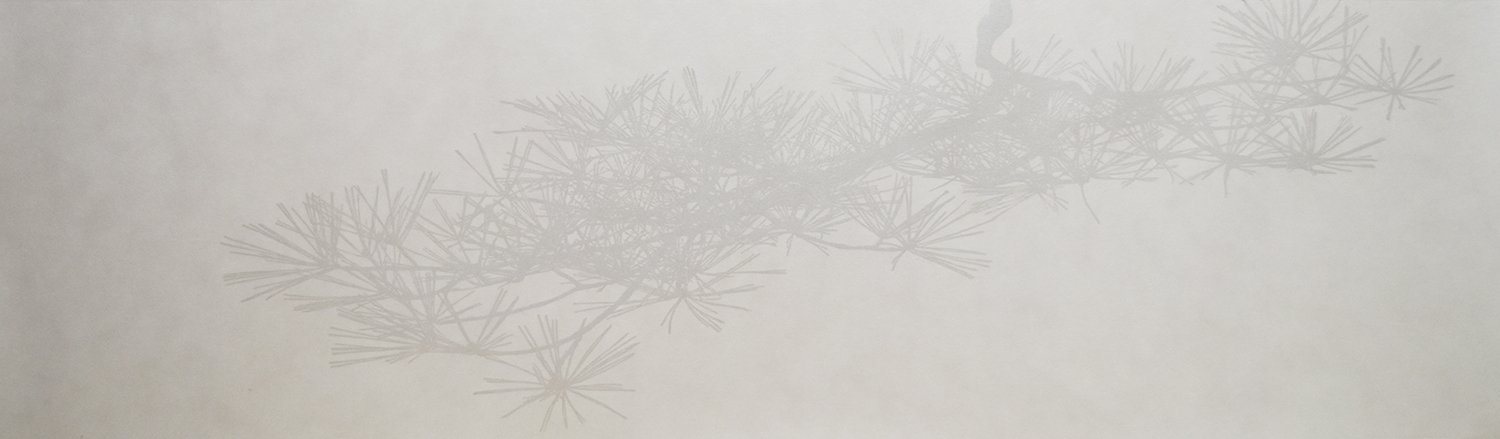 Pine tree in the moonlight / 35cm x 120cm / Oil-based woodcut with mica powder on paper