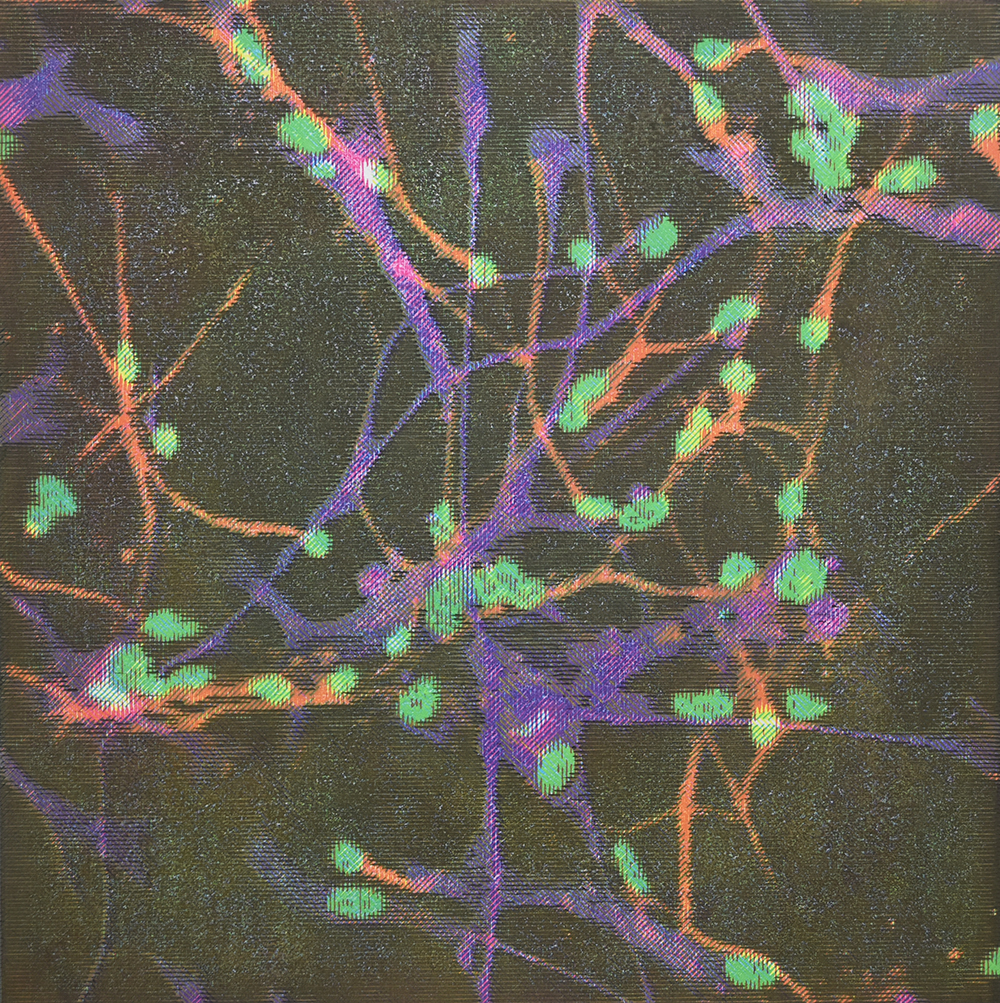 Predictably irrational #123 / 45cm x 45cm / Water-based woodcut on paper