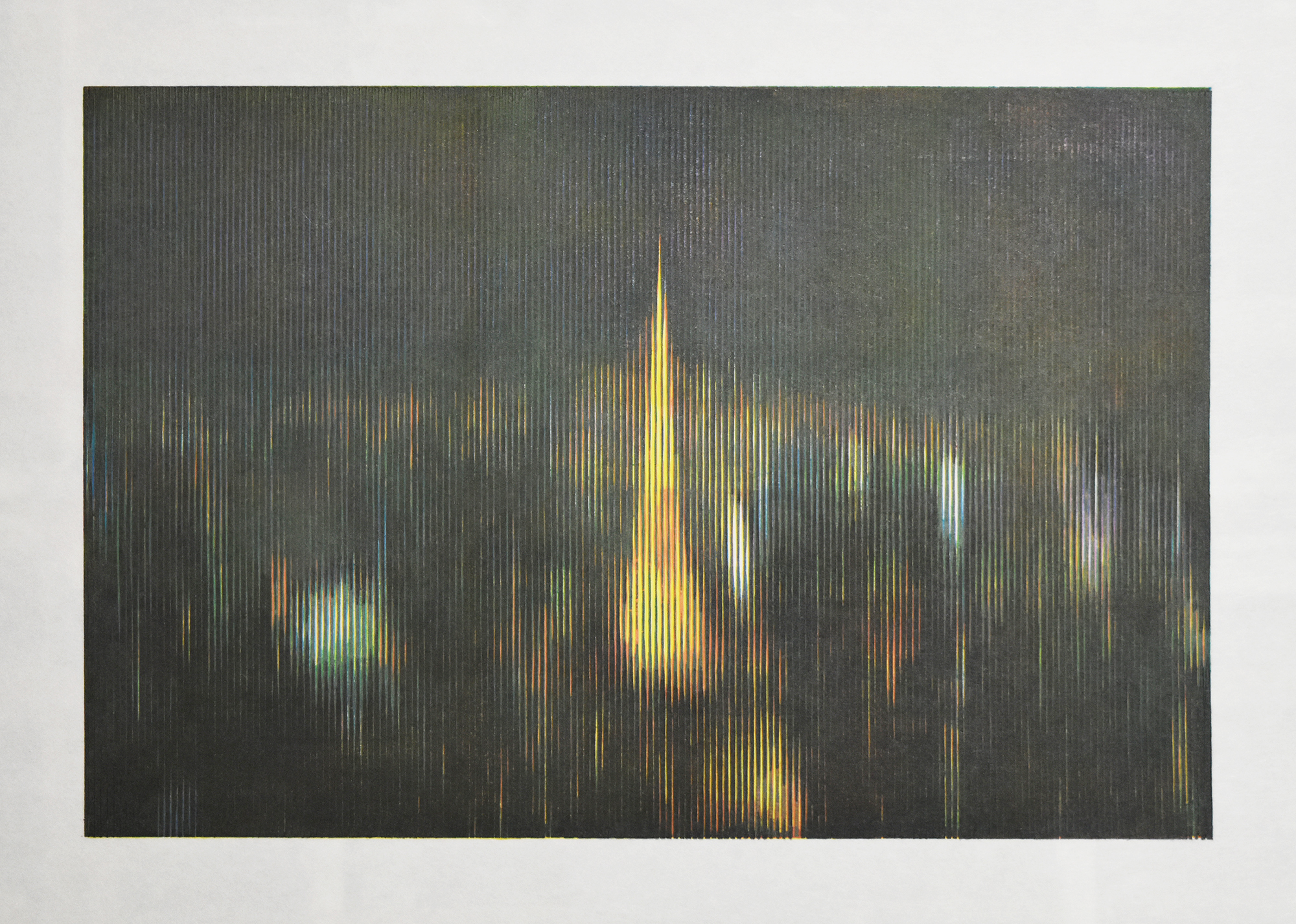 Tokyo night view #1 / 30cm x 45cm / Water-based woodcut on paper