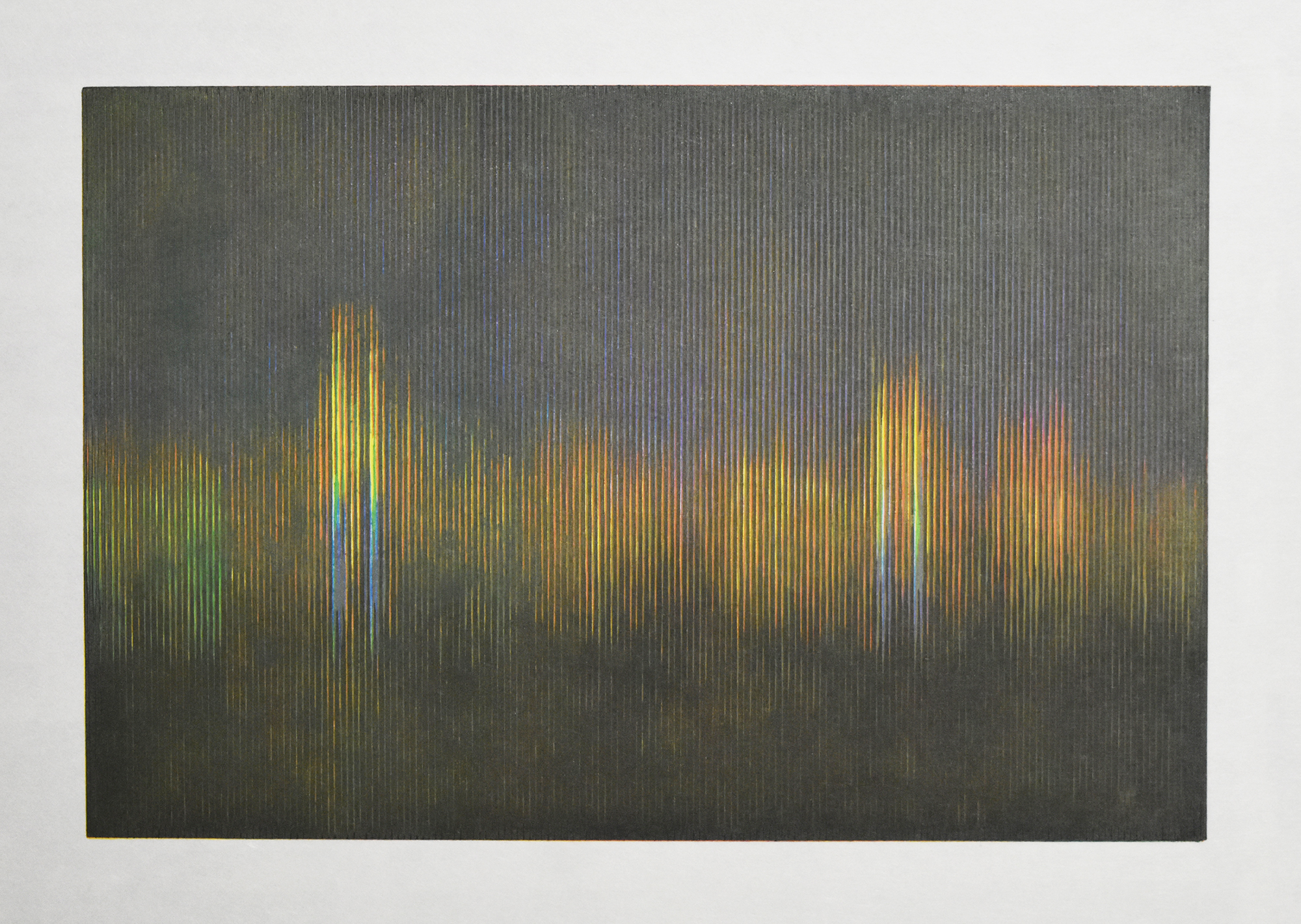 Tokyo night view #2 / 30cm x 45cm / Water-based woodcut on paper