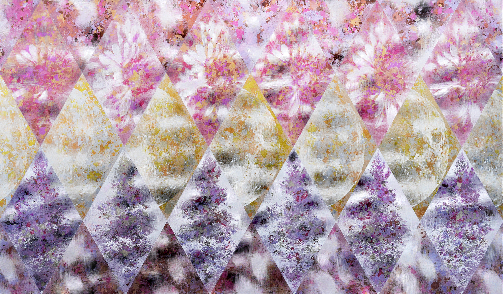 Geometric landscape #2 (Setsugekka) / 120cm x 210cm / Oil-based woodcut and coloured gold leaves on paper